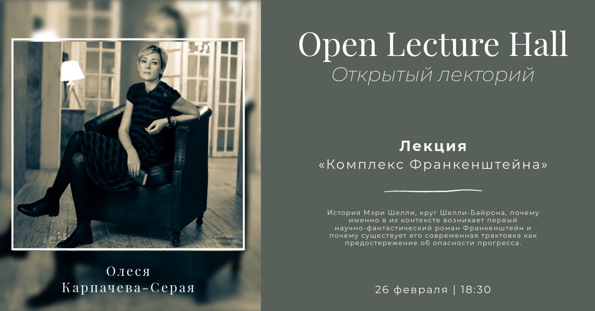 26 февраля в проекте «Открытый лекторий» Олеся Карпачева-Серая проведет лекцию «Комплекс Франкенштейна»