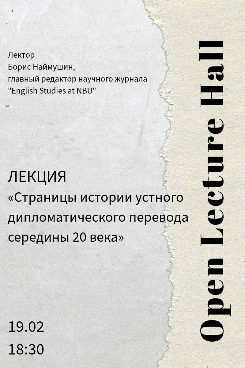 Открытый лекторий. «Страницы истории устного дипломатического перевода середины 20 века»